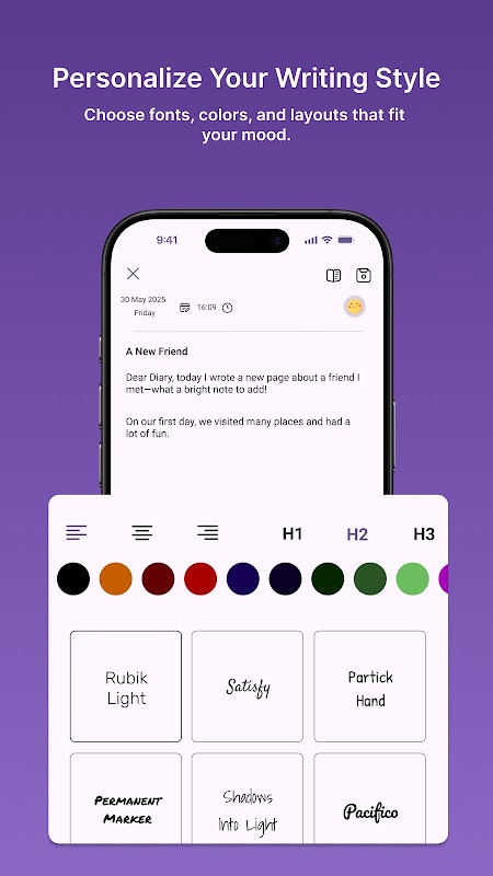 🌈 Konfigurowalne motywy i czcionki: Spersonalizuj swój pamiętnik za pomocą różnych urzekających motywów i czcionek. Dostosuj swoje notatki, korzystając z różnych kolorów, czcionek i narzędzi do formatowania tekstu, w tym tekstu pogrubionego, pochylonego i podkreślonego. Daynote obsługuje także ciemny motyw, który dostosowuje się do ustawień Twojego urządzenia.