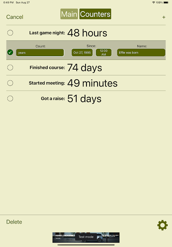 Policz dni od dowolnej daty. Licz dni, minuty, godziny, tygodnie, miesiące i lata. Zapisz listę swoich liczników.