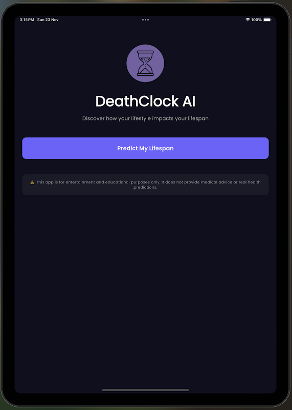 DeathClock AI to inteligentny, oparty na sztucznej inteligencji towarzysz dbania o zdrowie, który pomoże Ci odkryć, jak Twój styl życia może wpłynąć na długość Twojego życia. Wykorzystując zaawansowaną analitykę zdrowotną i modele uczenia maszynowego, aplikacja podaje szacunkową długość życia wraz ze spersonalizowanymi wskazówkami zdrowotnymi, które pomogą Ci żyć lepiej, dłużej i zdrowiej.