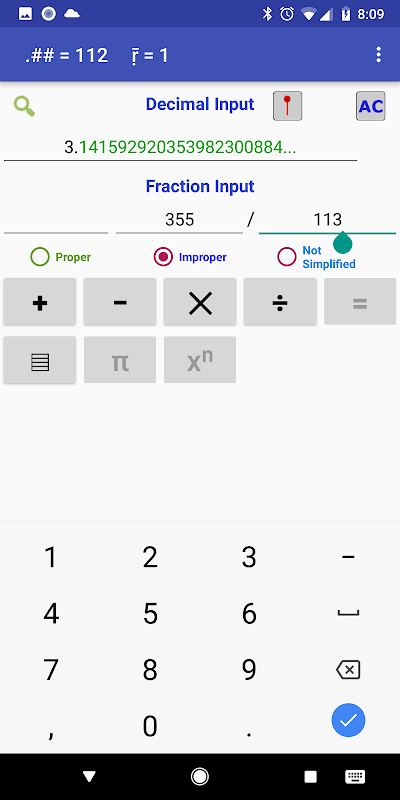 • The app now quickly displays a recurring decimal value while working with fractions.