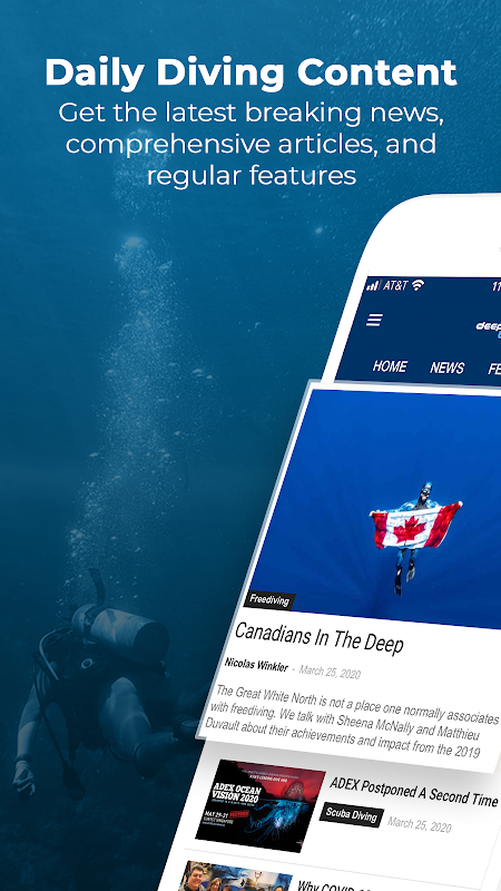 Otrzymuj codzienne najświeższe informacje, obszerne pogłębione artykuły, bezstronne recenzje i regularne funkcje Freediving, Scuba Diving, Ocean Advocacy i Diving Travel za pośrednictwem oficjalnej aplikacji DeeperBlue.com.