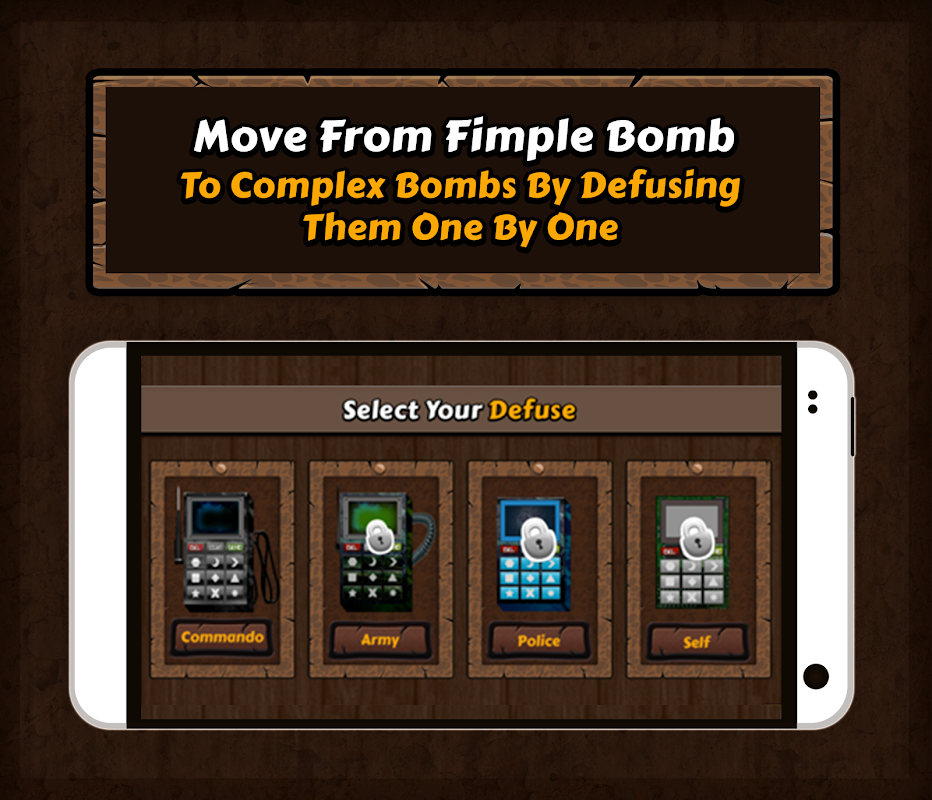 Self Mode: This is the hardest level of Defuse Bomb. In this level 1 minute is given to think the right combination and no hints are given. Every wrong entry results in deducting 10 seconds from remaining time.