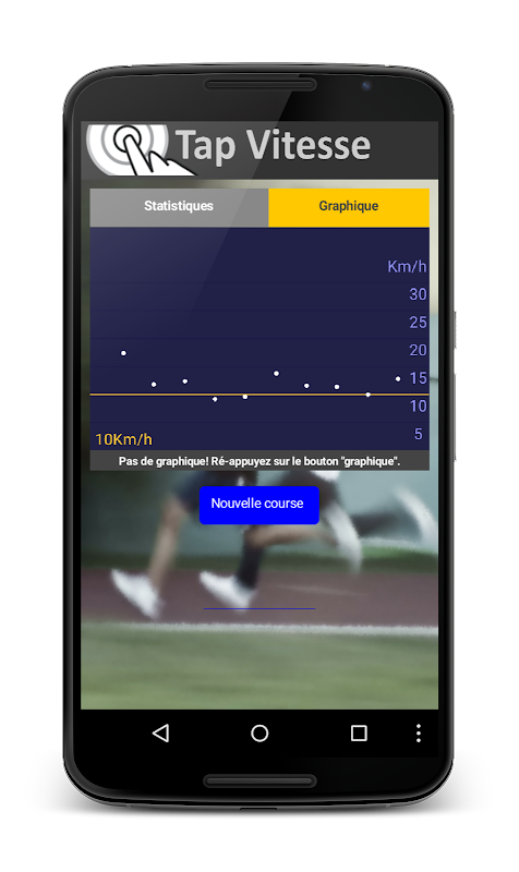 Choć niewidoczne, zegar działa nieprzerwanie w tle .... Po testach na kilku komputerach, może pojawić się niewielkie różnice w kolejności 0,1km / h na 6 wyścigów "przez moc procesorów. .. zawsze używać tego samego urządzenia, jeśli chcesz poświadczyć.