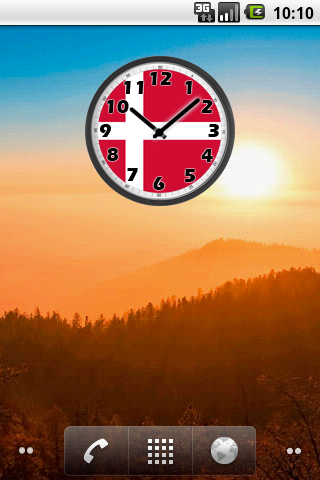 A Denmark Flag Analog Clock Widget will show you the time on your Android Desktop! Simple, realistic and cool!!!