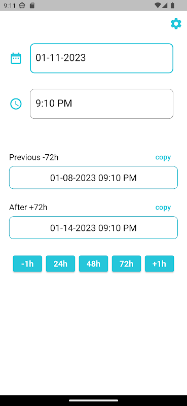 Aplikacja automatycznie obliczy 24 godziny, 48 godzin, 72 godziny lub dowolny inny czas.