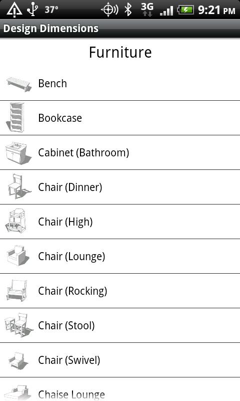 Design Students - Design Dimensions is the perfect studio companion for architecture students! Supplement or replace a number of costly textbooks with this time saving application. Impress your instructors by having projects designed right the first time. This application includes an ever-expanding library of the most commonly referenced items in design. With a simple tap of a button this application will also convert all measurements to Metric.