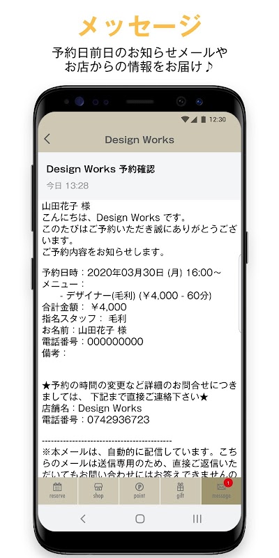 Jest to oficjalna aplikacja dla salonu piękności „Design Works” znajdującego się w Nishi Tomigaoka.