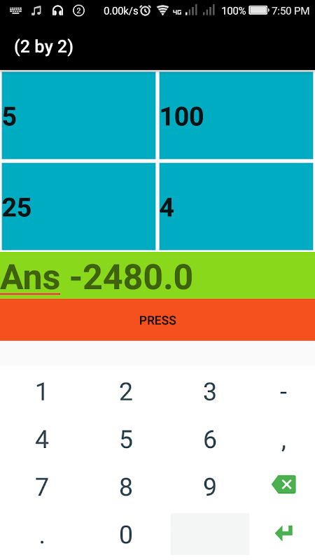In this application you can find the determinant of a matrix very easily.In this update we are just adding the order of 2,3,4 and 5.Application is faster and user friendly.Hope you like it.