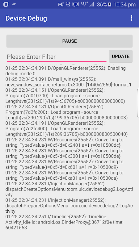 Debugować aplikację na urządzeniu poprzez filtrowanie dzienników, brak połączenia z PC potrzebne, aby zobaczyć logi