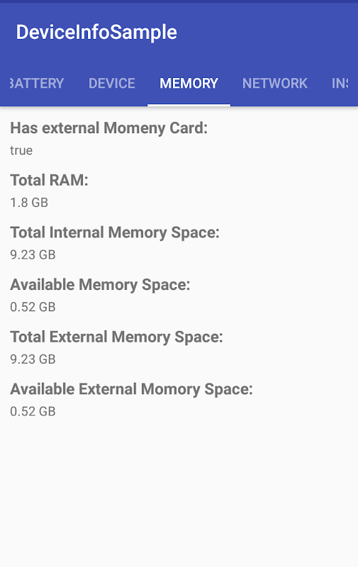 This app is aimed at developers and has no other functionality than demonstrating the Device Info library functionality.