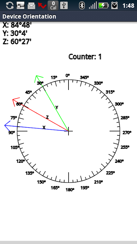 Orientacion del Celular en el sistema de Coordenadas X, Y, Z