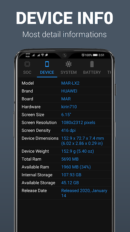 Ta aplikacja informacyjna o procesorze może być również używana jako aplikacja do specyfikacji mobilnej. Ponieważ za pomocą tej aplikacji możesz uzyskać informacje o specyfikacji telefonu.