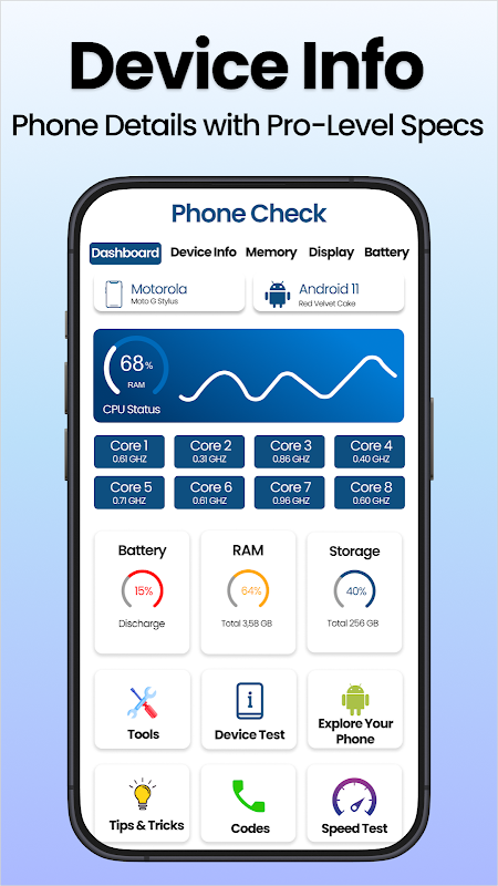 🔍 Explore Your Phone: Explore Your Phone feature enhances your device info experience with a powerful device insight feature.