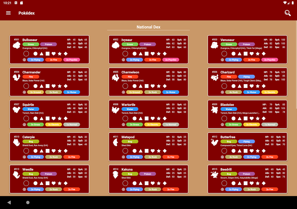 - National Dex i wszystkie inne dexes, w tym Johto, Hoenn itp.