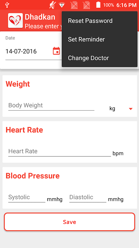Depending upon the type of treatment the patient is going through the Dhadkan App captures the health record parameters and sends it to the doctor.