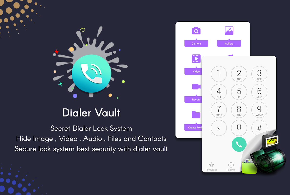 Dialer vault - Photo,Video, Files & App Locker is Hide Photo Video locks your personal and confidential pictures and videos or any file you want on your Android smartphone using fast encryption techniques. It hide pictures from any unauthorized person and secure them in app that will be called Dialer.
