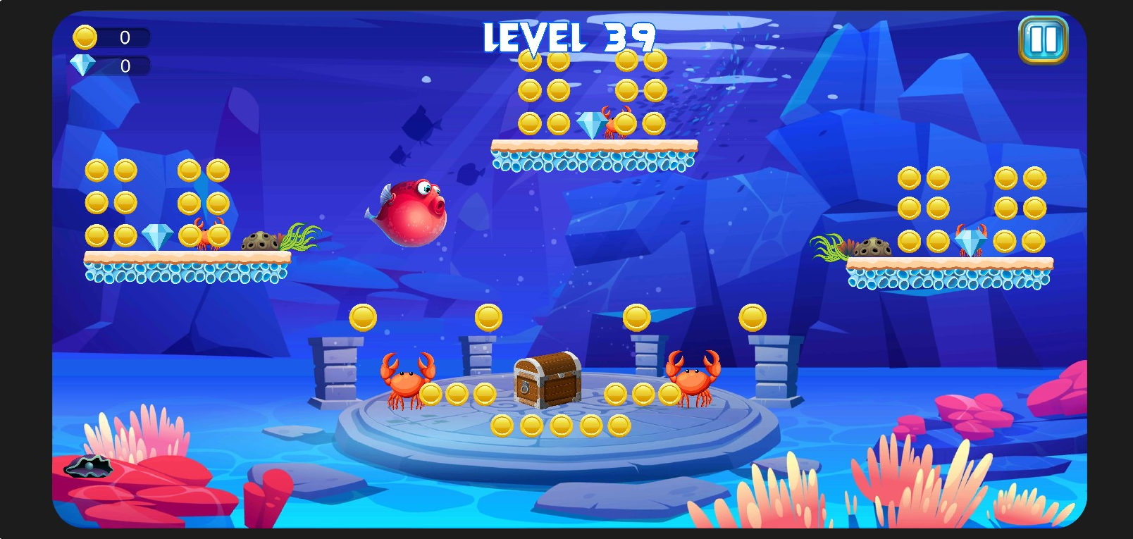 Ta gra rybna to gra swobodna, w której użytkownik cieszy się, zbierając diamenty i monety, aby przejść do następnego etapu i uzyskać więcej zabawy.