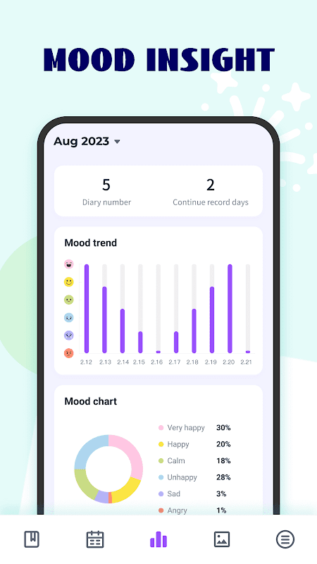 Emocje są integralną częścią naszego codziennego życia. Narzędzie do śledzenia emocji w dzienniku wykorzystuje emotikony do szybkiego rejestrowania codziennych uczuć. Możesz łatwo uchwycić codzienne emocje i zwizualizować swoją emocjonalną podróż za pomocą wnikliwych wykresów.
