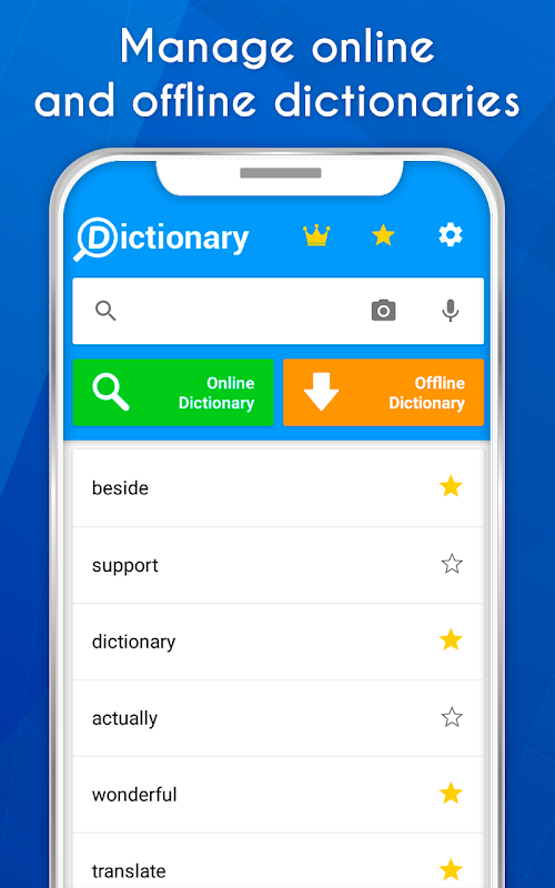 Najlepszym słowniku wielofunkcyjny na telefonie komórkowym. Można dostosować pobierając słowniki chcesz mieć bazę do własnych upodobań słownika słowników. Dostosowywanie aplikacji ze słowników w ponad 60 językach. Pobierz patrząc na słowa, które albo nie wyświetla słownika słownika trzeba i włączyć je i je wyłączyć. Zarządza kolejność każdego słownika kontrolowania kolejności, w jakiej pojawiają się znaczenia i definicje, synonimy i antonimy, Thesaurus ...