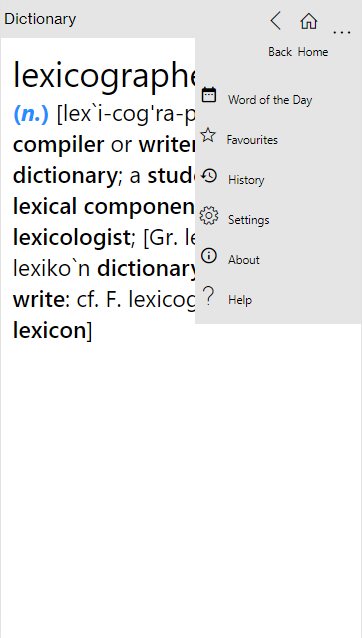 W miarę wpisywania, słownik automatycznie wyszukuje szukane słowo. Następnie możesz skorzystać z linków na stronie definicji, aby uzyskać więcej definicji. Symbole wieloznaczne mogą być używane w grach słownych, takich jak krzyżówki i scrabble, w których znana jest tylko część liter, trzeba znaleźć anagram lub w pisowni. Definicje zawierają synonimy i antonimy, dzięki czemu słownik może również pełnić funkcję słownika synonimów. Funkcja mowy pomaga w zapewnieniu poprawnej wymowy. Użyj motywu swojego urządzenia lub wybierz ciemny lub jasny motyw z niestandardowymi kolorami.