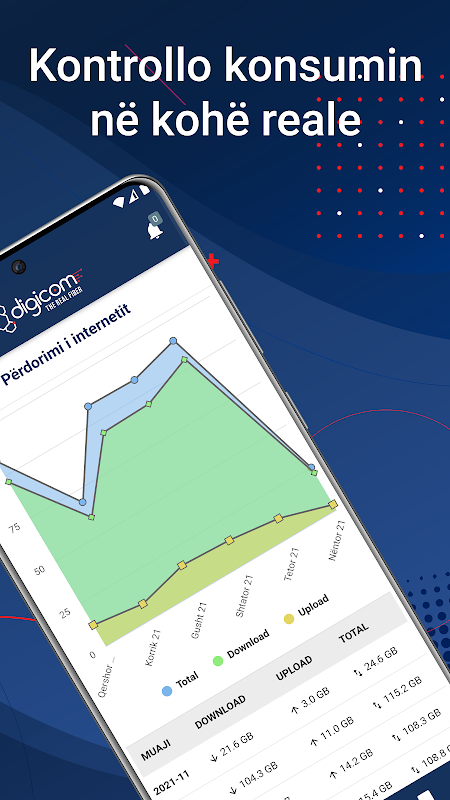 Aplikacioni Digicom UP ndihmon mnie një mori informacionesh dhe zgjidhjesh në kohë reale, të personalizuara vetëm për ty. Me pak klikime, ti mund të kesh akses në shumë opsione si: