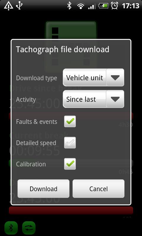 App for download and real time monitoring of digital tachograph data. Designed for use with the Tachosys digiblu device (see www.tachosys.com for details).
