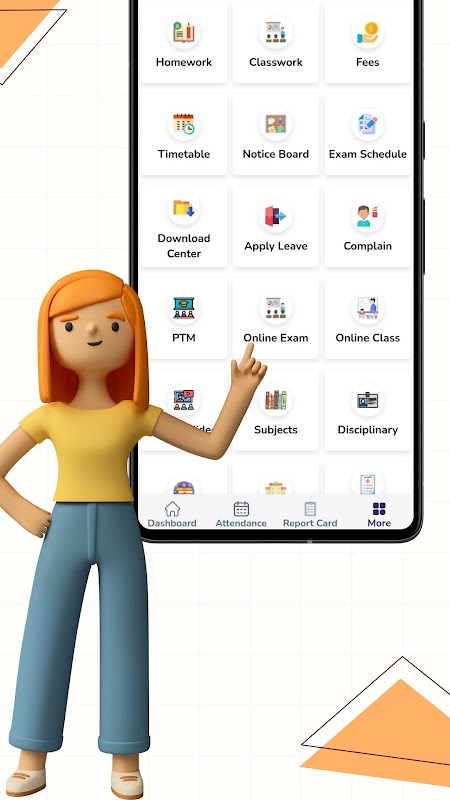 Jest to wielofunkcyjne oprogramowanie, które pomaga rodzicom monitorować obecność dziecka, płacić opłaty, otrzymywać powiadomienia, ubiegać się o urlop, odrabiać zadania domowe lub zajęcia lekcyjne, przeglądać odpowiednie notatki lub plany zajęć, rejestrować skargi i nie tylko.
