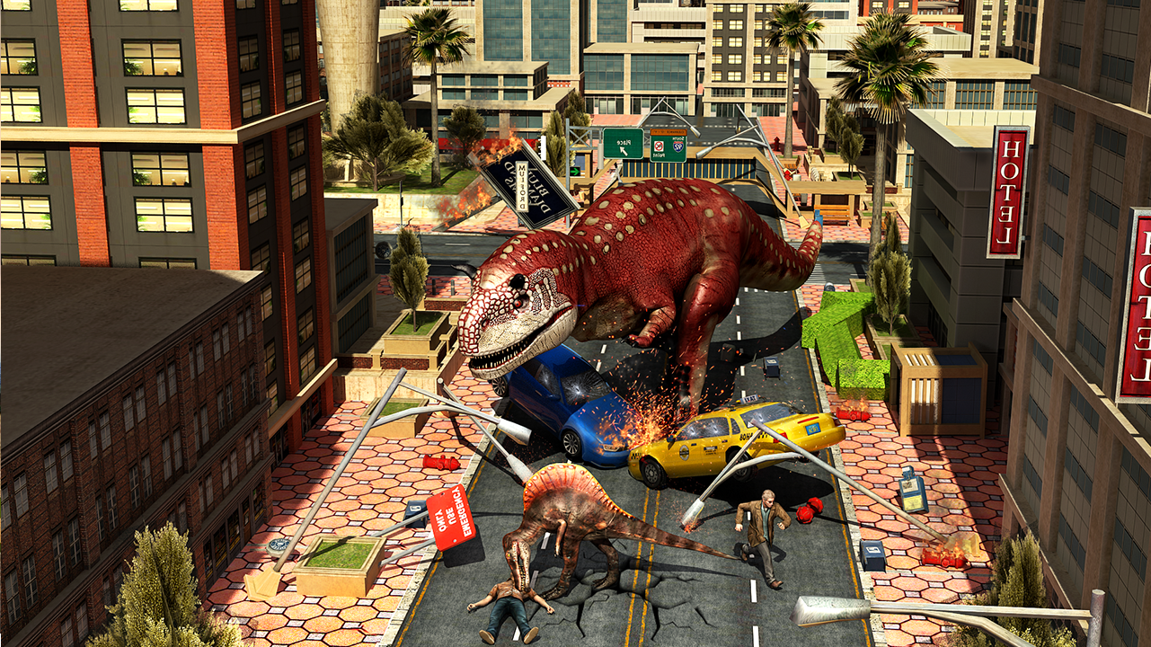 Angry Dino Hunting City Rampage 3D World Simulation 2019 3D to ekstremalna gra przetrwania i wściekły symulator dzikich bestii, w którym musisz zagrać w gigantyczną symulację 3D Dinozaurów i rozbić miasto. Szalone dinozaury w mieście to prawdziwa zbrodnia w mieście, ale jest to najlepsza symulacja dinozaurów pełna nieustannych akcji instynktów atakujących świat dinozaurów, dzikich zwierząt, roślinożerców i drapieżników. To atak na miasto dinozaurów, krwiożerczy dinozaur rozbija miasta o pazury i ostre zęby. Ten dinozaur oferuje Ci życie wściekłego gniewnego dzikiego dinozaura i drapieżnika gada bagiennego potwora i burzenie całego miasta. Będziesz tylko przyczyną tego zniszczenia, grając rolę prawdziwego ataku dinozaurów i ogromnego drapieżnika dinozaurów w świecie dinozaurów.