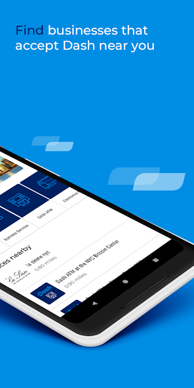 The Discover Dash app helps you discover places to spend your Dash cryptocurrency when you shop on the go, wherever you are, right from your Android device! Search for specific services and business that accept Dash, or choose from a wide range of popular categories, such as, restaurants, Technology & IT, Dash ATMs, and many more.