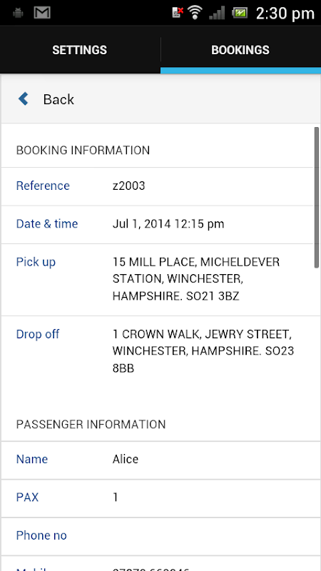 - Natychmiast otrzymywać wysyłane rezerwacje z pełnymi szczegółami pasażera, informacje o locie, czas zbierania, odbioru, punkty i zasnąć lokalizacje, czekać i wrócić instrukcji i wszelkich taryfy zbierać
