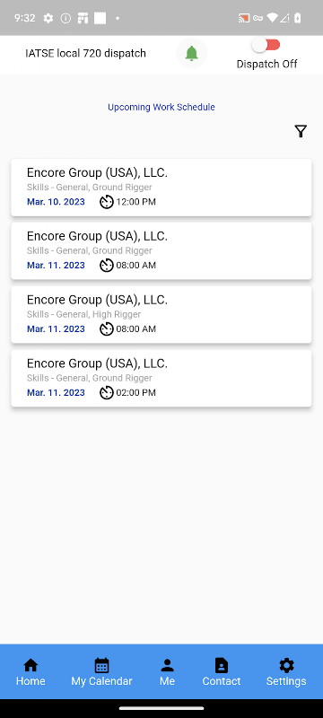 Aby korzystać z aplikacji mobilnej Dispatch, musisz być aktywnym referentem lokalnego biura IATSE 720 w Las Vegas, NV