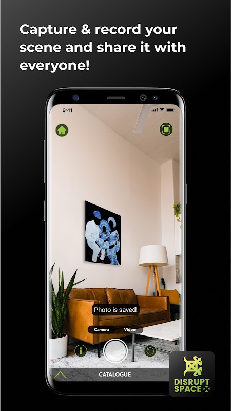 Stuknij grafikę w wirtualnej galerii, aby wyświetlić wyskakujące okienko szczegółów grafiki, kliknij przycisk ikony AR, zeskanuj obszar i stuknij miejsce, w którym pojawiają się zielone linie, aby wyświetlić grafikę w AR, przeciągnij i obróć, aby dostosować rozmieszczenie we własnej przestrzeni!