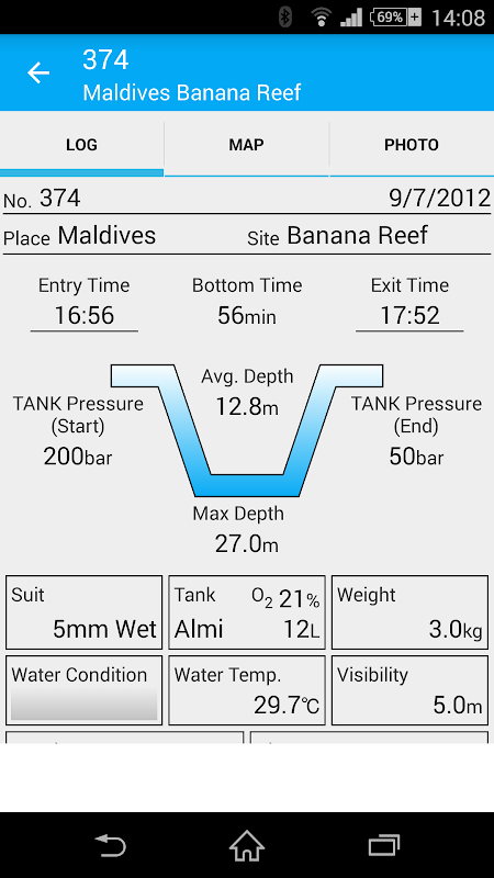 Ta aplikacja jest Scuba Diving Log. To ma taki sam wygląd jak papier jednego.