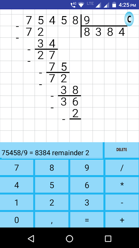 Division calculator is best way to learn mathematical operations. It works as like a math teacher, Step by step explanation of basic operations in mathematics like addition, subtraction, multiplication and division is available.