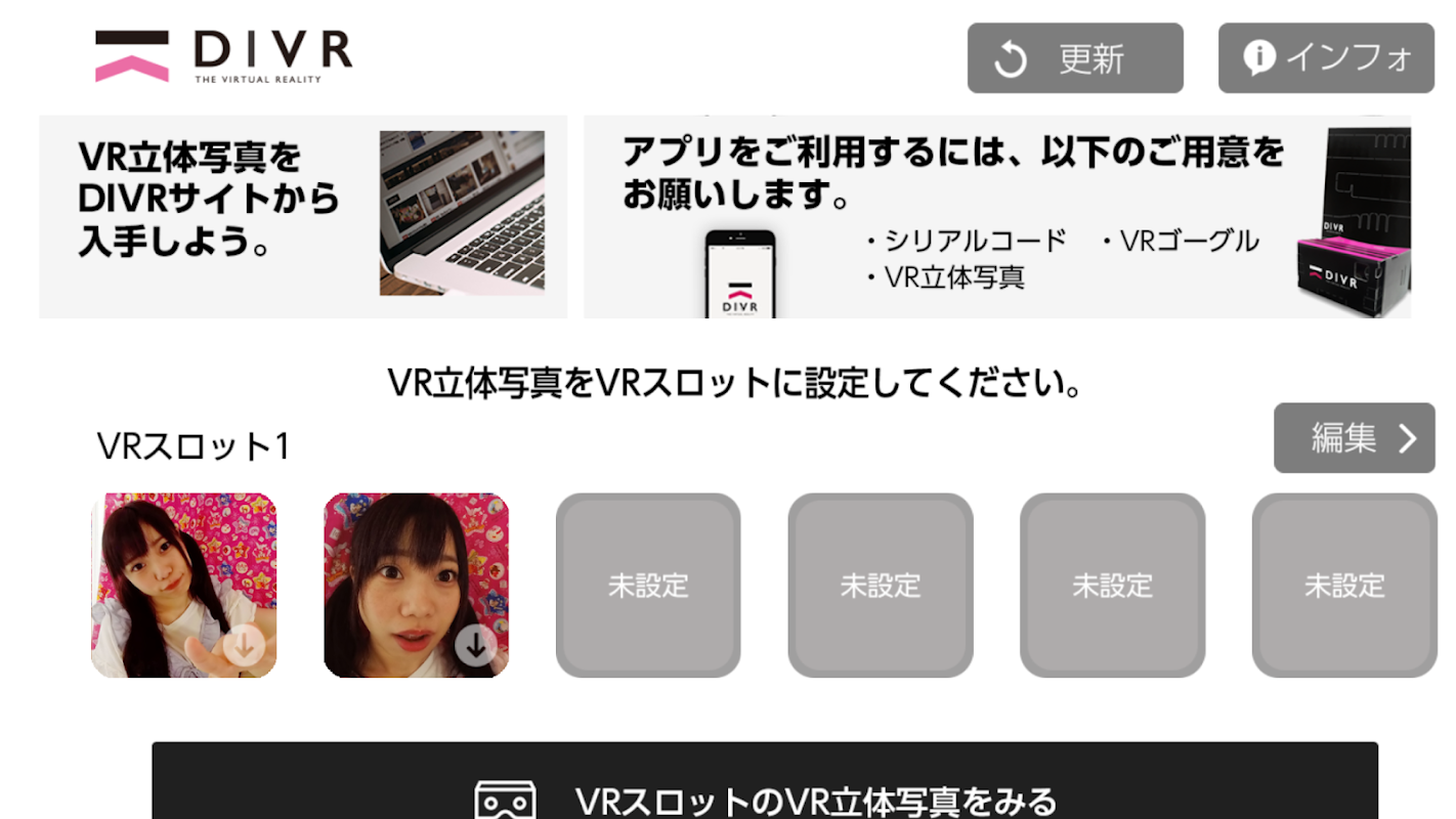 ② DIVRサイトのマイページで、VRスロットに入れるVR立体写真を設定します。