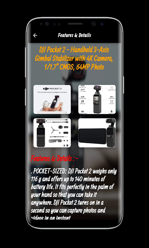 Aplikacja DJI Pocket 2 Guide zawiera wiele informacji i funkcji DJI Pocket 2, które można łatwo i przejrzyście uzyskać. Dzięki aplikacji DJI Pocket 2 Guide możesz obejrzeć film z DJI Pocket 2, który daje możliwość poznania wyglądu i funkcji DJI Pocket 2 Posiada również wiele różnych funkcji, w tym rozmiar kieszonkowy: DJI Pocket 2 waży tylko 116 gramów i zapewnia żywotność baterii do 140 minut. Idealnie leży w dłoni, dzięki czemu możesz go zabrać wszędzie. DJI Pocket 2 uruchamia się w kilka sekund, dzięki czemu możesz błyskawicznie robić zdjęcia i nagrywać filmy.