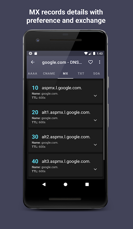 DNS Hero let you inspect DNS zones easily. This app will give you information about the root nameserver, nameservers associated with the domain and various other DNS records (A, AAAA, MX, CNAME, TXT, SOA). You can also view the domain health as a diagnostic is run.