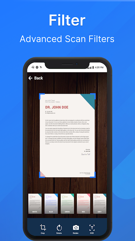 Zmień swoje urządzenie z Androidem w potężne narzędzie do skanowania dokumentów za pomocą „Doc Scanner”! Najlepsze skanowanie za pomocą Top Scanner. Natychmiast skanuj, zapisuj i udostępniaj dowolny dokument w formacie PDF lub JPEG. Niezależnie od tego, czy rejestrujesz rachunki, notatki, faktury czy jakikolwiek inny dokument, nasza aplikacja zapewnia najwyższą przejrzystość i szczegółowość.