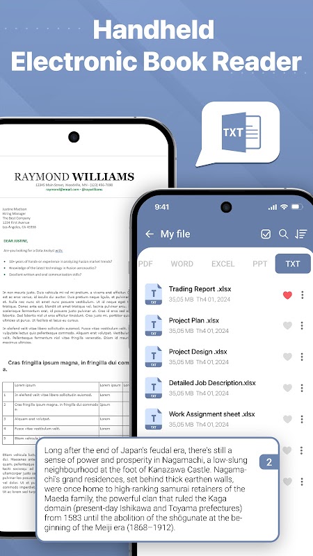 - Otwórz wszystkie formaty plików: Z łatwością otwieraj dowolny dokument, w tym pliki PDF, DOC, DOCX, XLS, XLSX, PPT i TXT, bezpośrednio z urządzenia mobilnego.