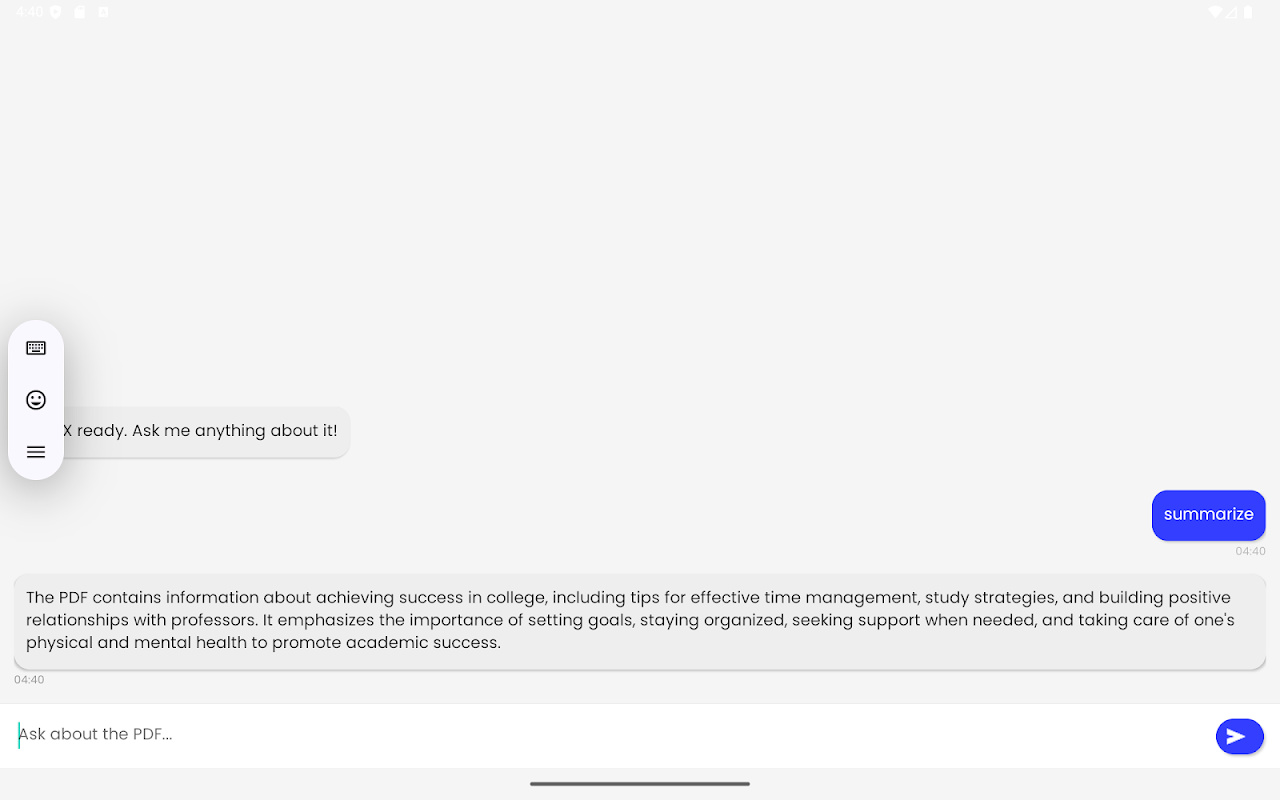 To, co naprawdę wyróżnia AI Docx Reader, to inteligentna integracja ze sztuczną inteligencją. Oprócz podstawowego przeglądania, aplikacja wykorzystuje sztuczną inteligencję do natychmiastowego generowania podsumowań, kluczowych spostrzeżeń i wyodrębniania tekstu z dokumentów Word Office w formacie docx. Łatwe odczytywanie treści w dokumentach Word i plikach Office Word bez ręcznego skanowania. Chociaż nie obsługuje edycji plików DOCX ani Excel, sztuczna inteligencja działa jak pomocny asystent do przeglądania zawartości Worda, szybkiego ładowania dokumentów i zaznaczania ważnych fragmentów. Idealny dla studentów, profesjonalistów i każdego, kto potrzebuje czytnika Worda lub przeglądarki dokumentów opartej na sztucznej inteligencji.