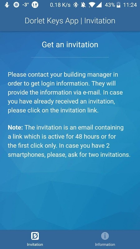 To use the app, please check the invitation email and connect you mobile to Dorlet.