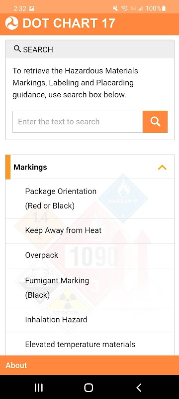 Wykres DOT-17 administracji bezpieczeństwa rurociągów i materiałów niebezpiecznych (PHMSA) zapewnia pełnokolorowe wyświetlanie oznaczeń, etykiet i tabliczek określonych w przepisach dotyczących materiałów niebezpiecznych (HMR; 49 CFR części 171-180). Ta aplikacja mobilna umożliwia załadowcom, przewoźnikom i innym zainteresowanym stronom szybki dostęp do informacji wizualnych i cytowań HMR z DOT Chart-17.