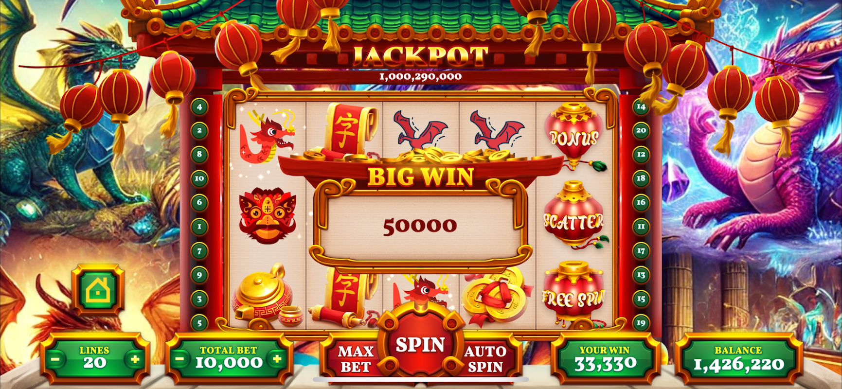 Uwolnij swojego wewnętrznego poszukiwacza przygód i poczuj dreszczyk emocji w aplikacji Dragon Slots, najlepszym miejscu dla darmowych gier na automatach inspirowanych potężnymi smokami, magicznymi skarbami i epickimi przygodami fantasy! Ta aplikacja, dostępna teraz w sklepie Google Play, łączy w sobie emocje związane z grą w kasynie z urokiem legendarnych smoczych opowieści, aby zapewnić niezapomniane wrażenia na automatach. Ta darmowa aplikacja kasynowa, idealna zarówno dla zwykłych graczy, jak i entuzjastów automatów, jest kluczem do niekończącej się zabawy, ogromnych jackpotów i podróży do świata ognia i fortuny.