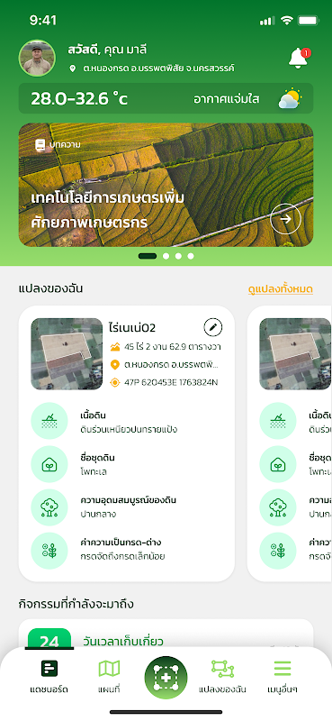 Cyfrowa platforma rolnicza zaprojektowana z myślą o zaspokojeniu wszystkich potrzeb Problemy rolników na poziomie działki z dokładną i nowoczesną technologią przestrzenną i geoinformatyczną. Umożliwia rolnikom śledzenie, monitorowanie, przewidywanie i posiadanie dynamicznych danych. w podejmowaniu decyzji to jest aktualne A przydaje się do podejmowania decyzji o planowaniu i zarządzaniu własnymi działkami uprawnymi całkowicie od początku sadzenia do sprzedaży płodów rolnych. Ta platforma doprowadzi do tworzenia szczęśliwych rodzin i generowania stabilnych dochodów tajlandzkich rolników w zrównoważony sposób.