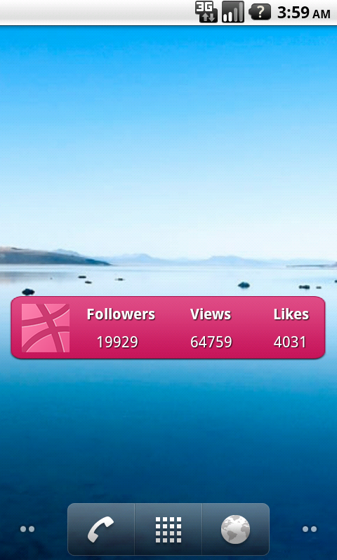 New Update! Fully functional once again. Finally, a simple free Dribbble widget showing how many followers, views, and likes you have for all of your shots. Simply install, place the widget, and insert your Dribbble username. This widget will automatically update every 15 minutes so you can get the most up to date stats of your account.