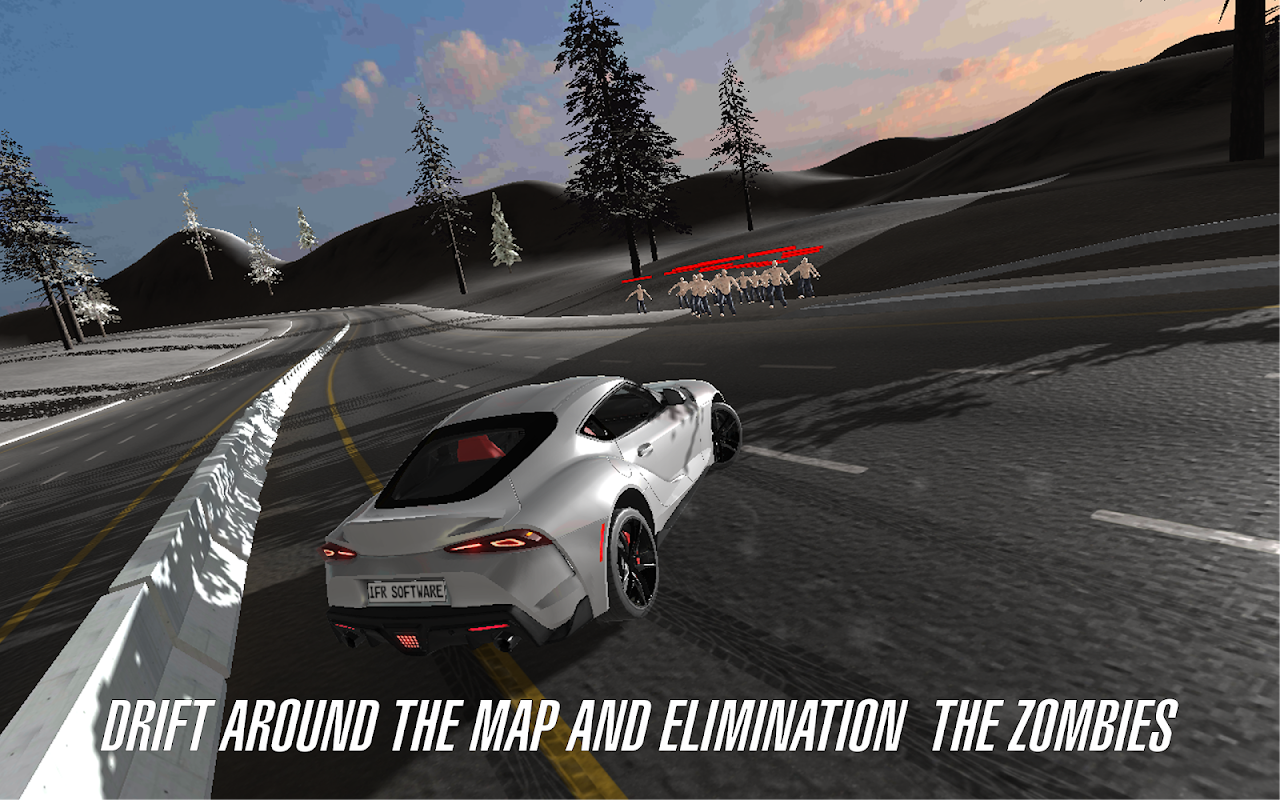 Driftuj po mapie i eliminuj zombie. Zarabiaj monety, odblokowuj i ulepszaj nowe pojazdy, odblokowuj i kupuj nowe części do samochodów.