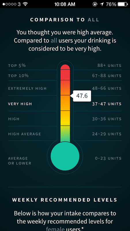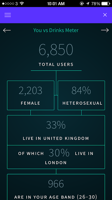 Miernik oferuje napoje, obiektywne anonimowe opinie o swoich spożywania alkoholu i porównania do tysięcy nawyków picia ludzi na całym świecie.