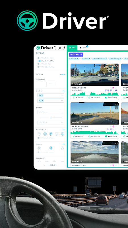 Naszą misją w Driver jest uczynienie jazdy bezpieczniejszą i mądrzejszą dla wszystkich. Niepłatna wersja aplikacji jest wolna od reklam i całkowicie bezpłatna. Aby dowiedzieć się więcej o ofercie produktów Driver, odwiedź stronę https://www.drivertechnologies.com.