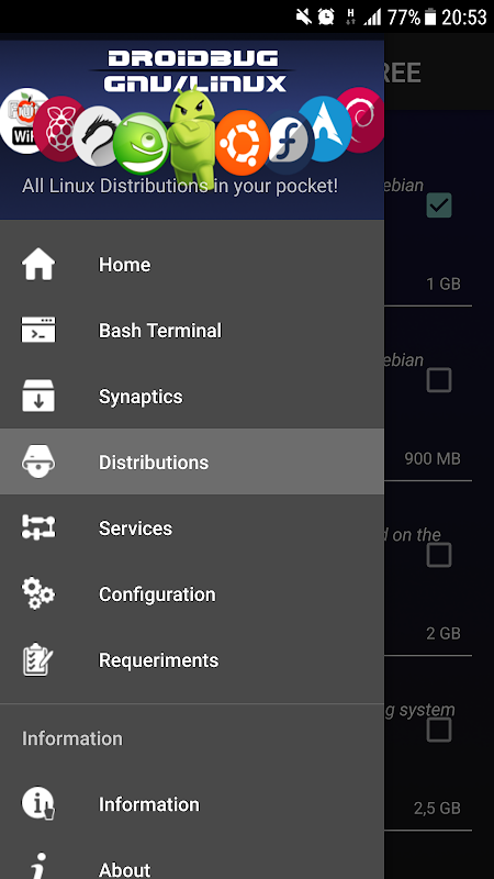 Łatwa konfiguracja, wybierz preferowaną dystrybucję, możesz także zarządzać pakietami za pomocą synaptics (dostosowany do Androida). prawie wszystkie dystrybucje są dostarczane z pulpitem Xfce do szybkiego użycia ...
