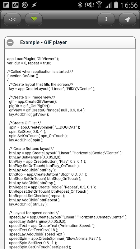 Android does not natively support the animated GIF format in Image Views. This plugin allows DroidScript to display the animated format, as well as control them in a similar way to how you would control a video file.